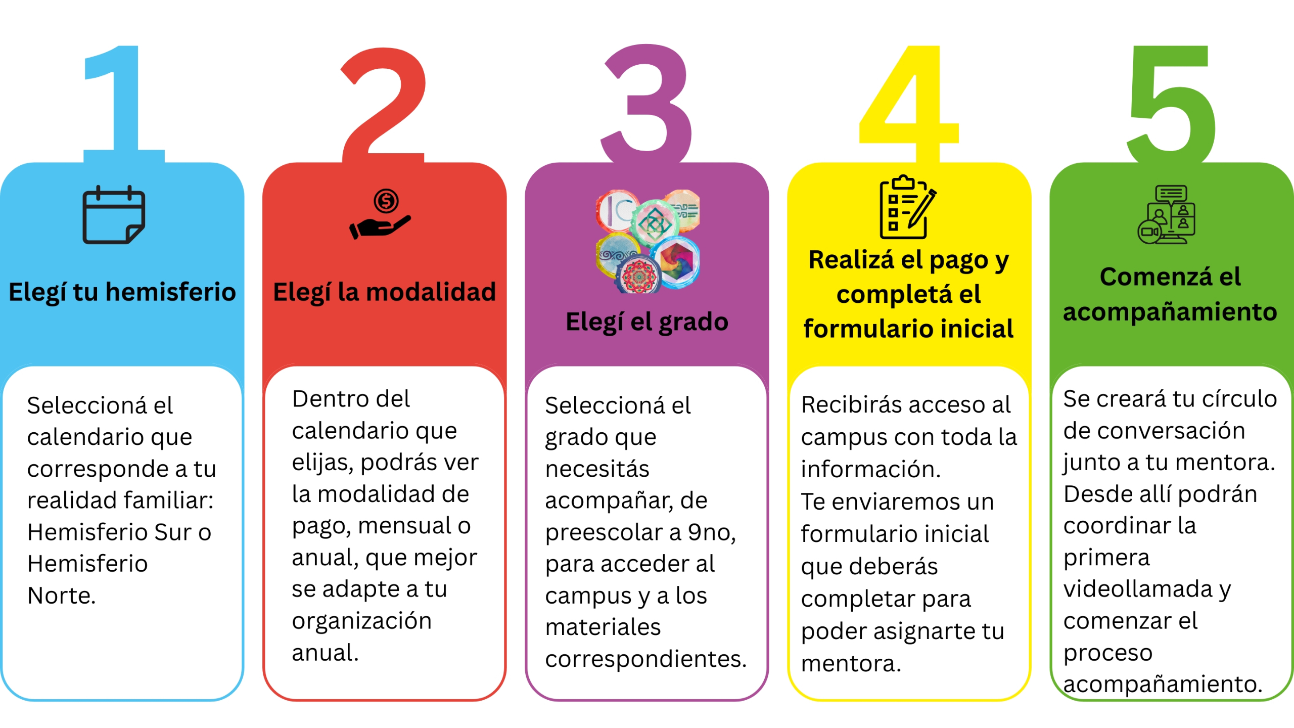 Elegí la modalidad que mejor acompañe la organización económica de tu familia. Todas las opciones forman parte del mismo programa pedagógico y permiten acceder al acompañamiento correspondiente al nivel elegido.